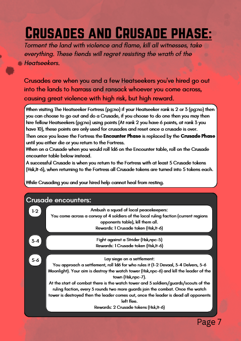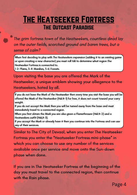 In Heatseekers you have the option of joining a new faction known as "The Heatseekers", when working with the heatseekers all other factions hate you but in return you can get extremely powerful with new items exclusive to the Heatseekers. Sadly there is no art in the pdf yet.